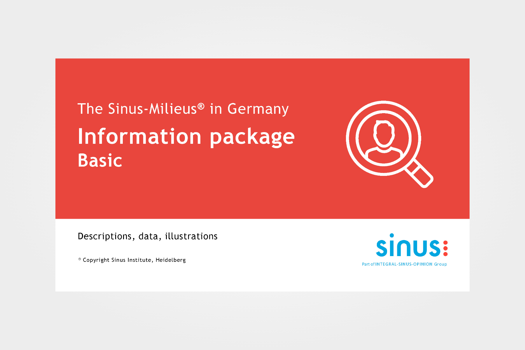 Our information packages contain the most important information on the Sinus Milieus, as well as on a variety of specific topics. These packages analyse the respective issues and market conditions according to Sinus Milieus and provide a detailed presentation of the results. The information packages are regularly updated with representative data and new content.