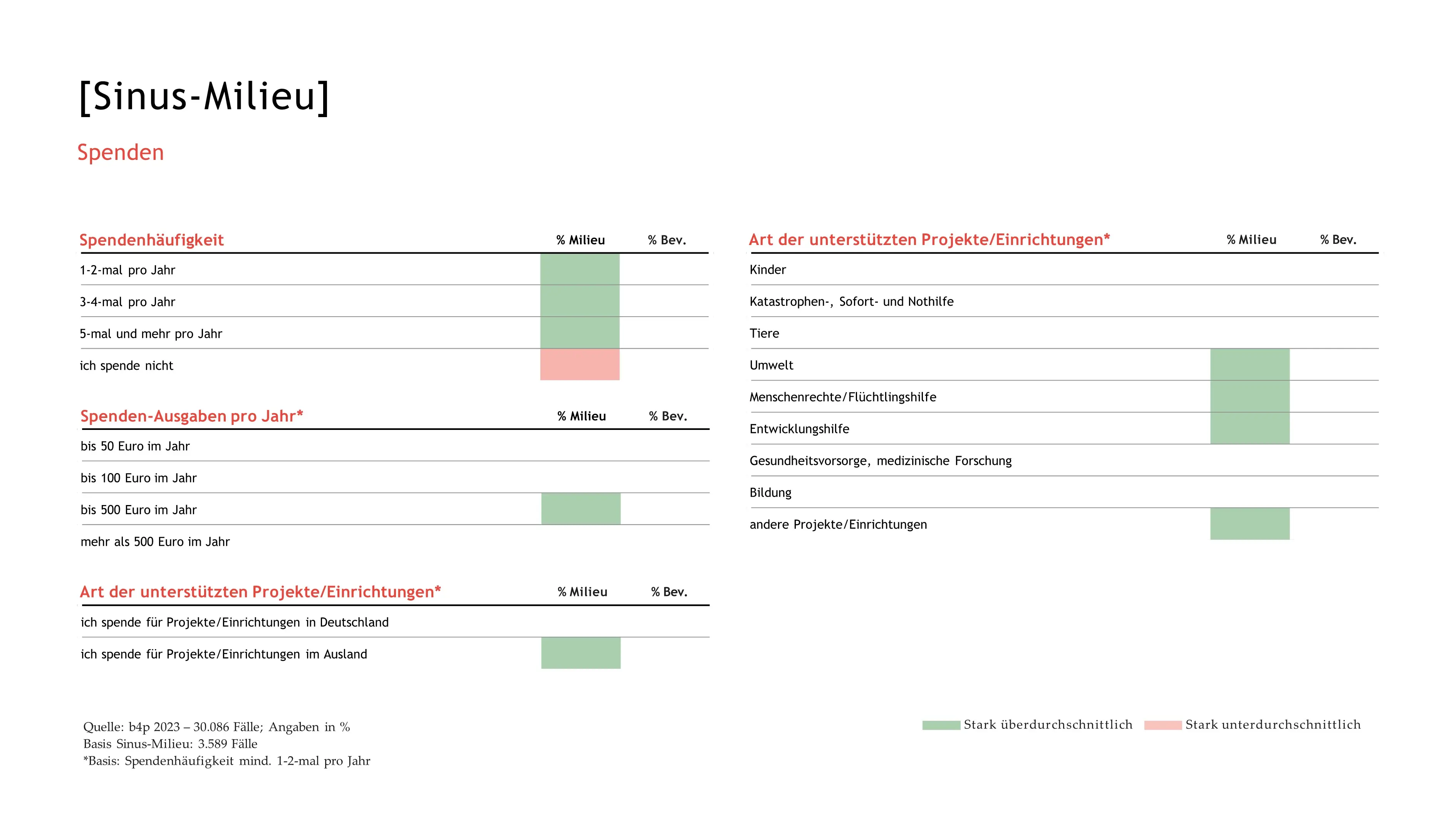 - Sinus-Milieus können individuell zusammengestellt werden, auch paket- und jahrübergreifend