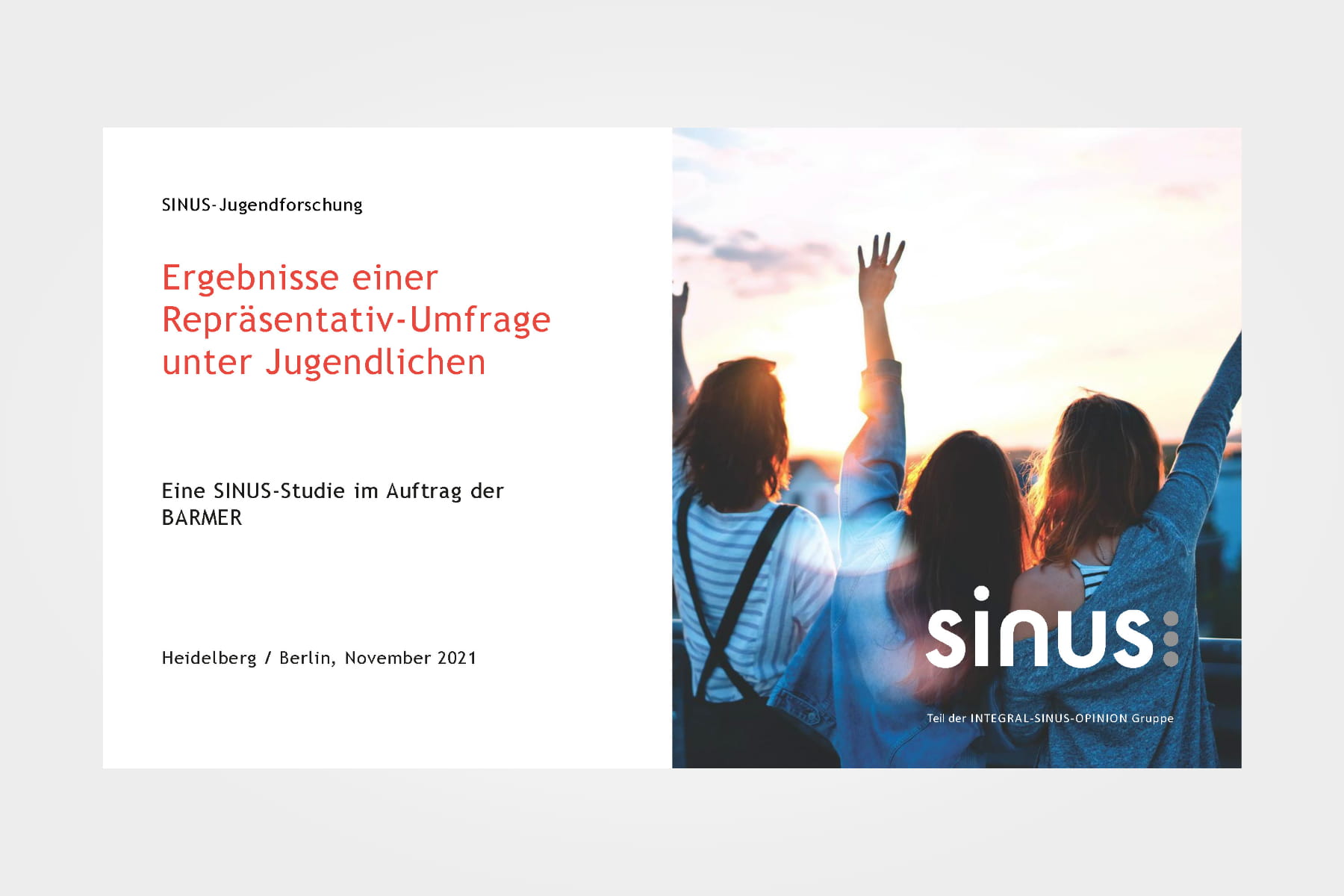 Im Auftrag der BARMER hat das SINUS-Institut im Oktober 2021 eine repräsentative Online-Befragung unter 2.005 Jugendlichen im Alter von 14 bis 17 Jahren durchgeführt. Zum Einsatz kam auch das Sinus-Modell für jugendliche Lebenswelten (Sinus-Jugendmilieus). Die Themen der Befragung waren: