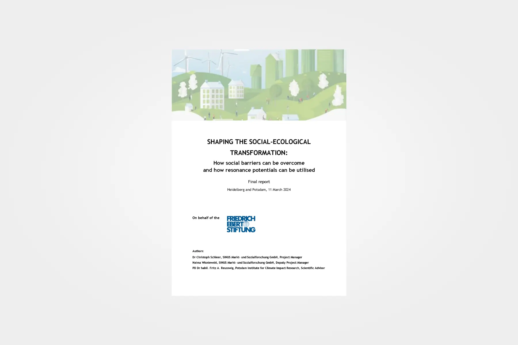 On behalf of the Friedrich-Ebert-Stiftung, SINUS-Institut asked over 22,000 citizens in 19 countries (in Europe and North America) about their perceptions, interests and fears associated with the socio-ecological transformation.