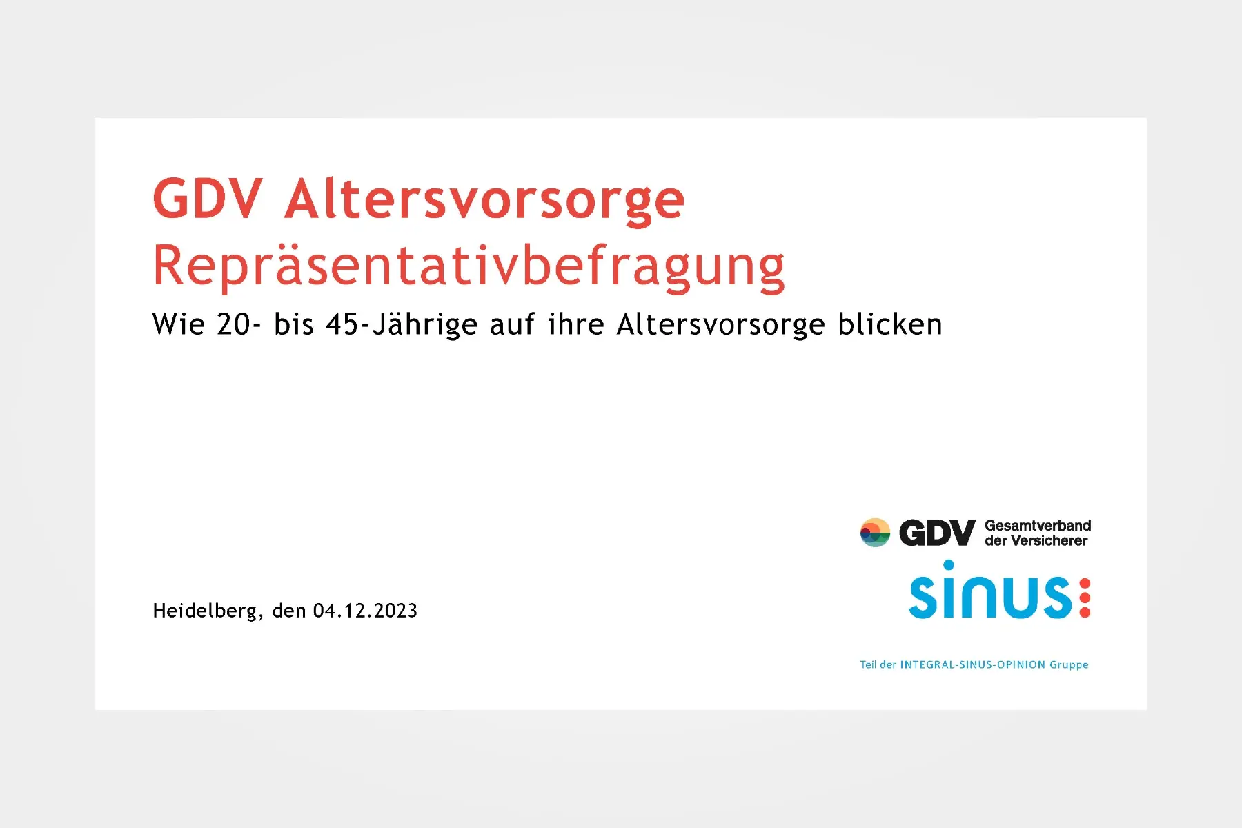 The following topics were examined in a representative survey of 20 to 45-year-olds for GDV - German Insurance Association: