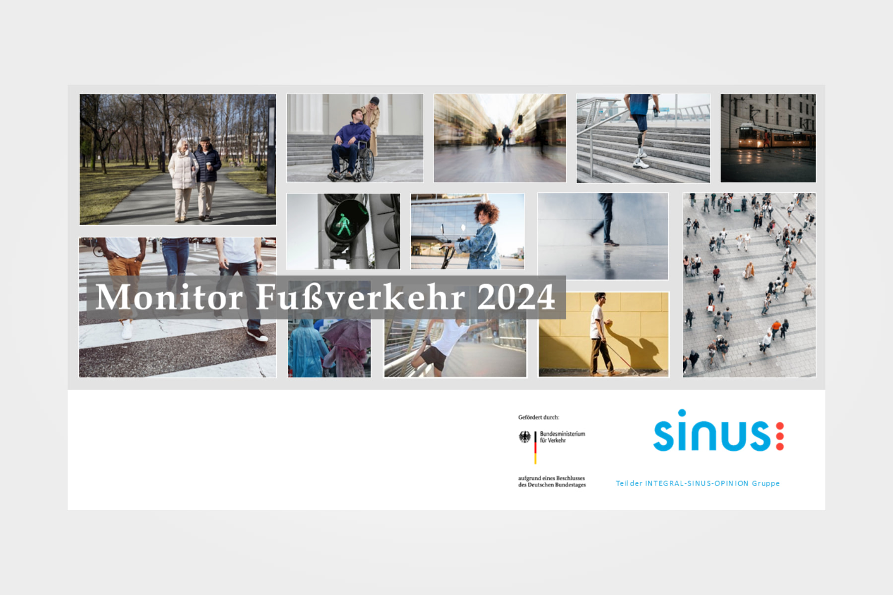 The “Pedestrian Monitor Germany 2024” study provides the first well-founded empirical basis on the mood and behavior of the population in Germany with regard to mobility on foot. The study was conducted by SINUS-Institut and supported by the Federal for Transport (BMV).
