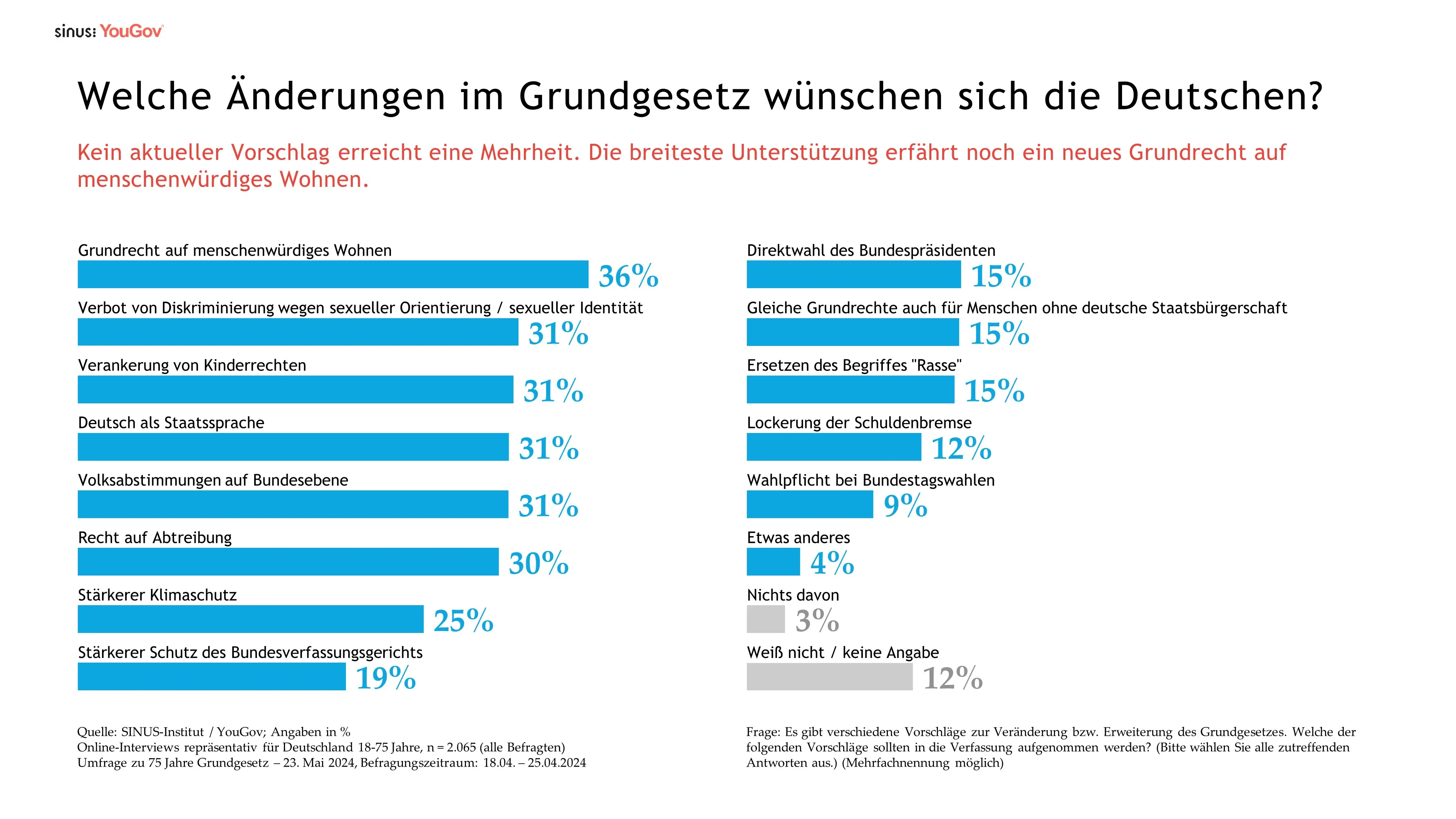 SINUS-Studie anlässlich „75 Jahre Grundgesetz“ am 23. Mai 2024 in Kooperation mit YouGov