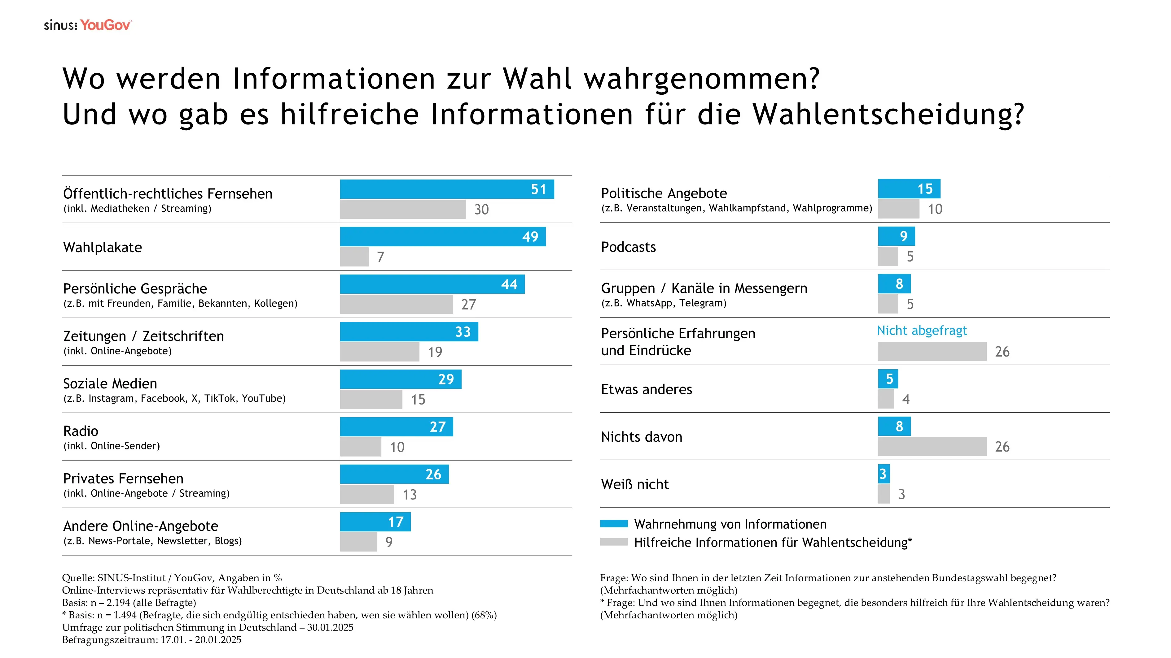 Wichtige Informationsquellen: Öffentlich-rechtliches Fernsehen, Wahlplakate und persönliche Gespräche – Soziale Medien bei Jüngeren relevant