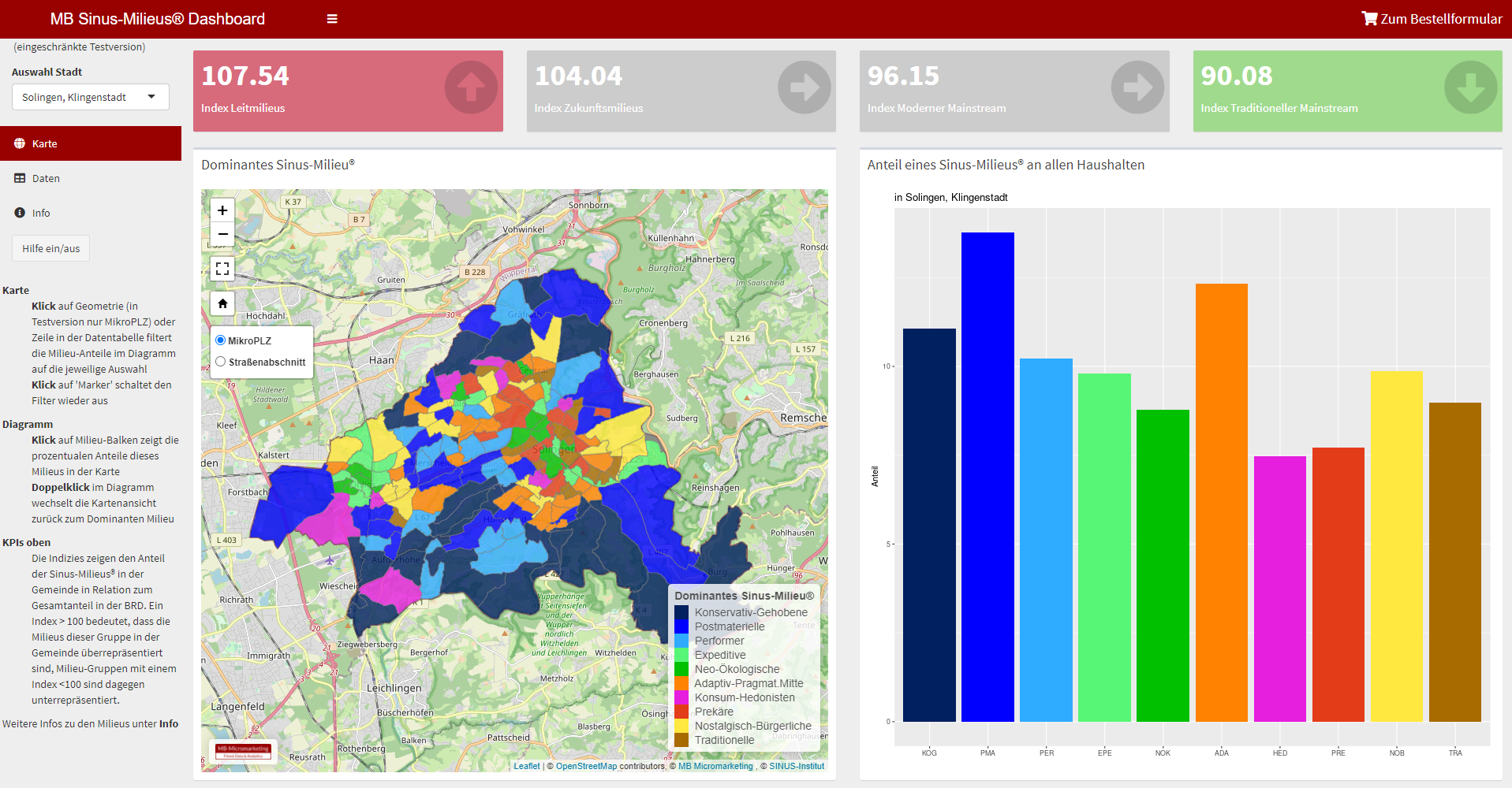 Milieu der Performer | Die effizienzorientierte und fortschrittsoptimistische Leistungselite: globalökonomisches und liberales Denken; gesamtgesellschaftliche Perspektive auf der Basis von Eigenverantwortung; Selbstbild als Stil- und Konsum-Pioniere; hohe Technik- und Digital-Affinität Beispielkarte: Hamburg-Rotherbaum |