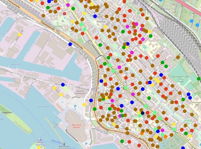 Traditionelles Milieu | Die Sicherheit und Ordnung liebende ältere Generation: verhaftet in der kleinbürgerlichen Welt bzw. traditionellen Arbeiterkultur; anspruchslose Anpassung an die Notwendigkeiten; steigende Akzeptanz der neuen Nachhaltigkeitsnorm; Selbstbild als rechtschaffene kleine Leute Beispielkarte: Bremen-Gröpelingen |